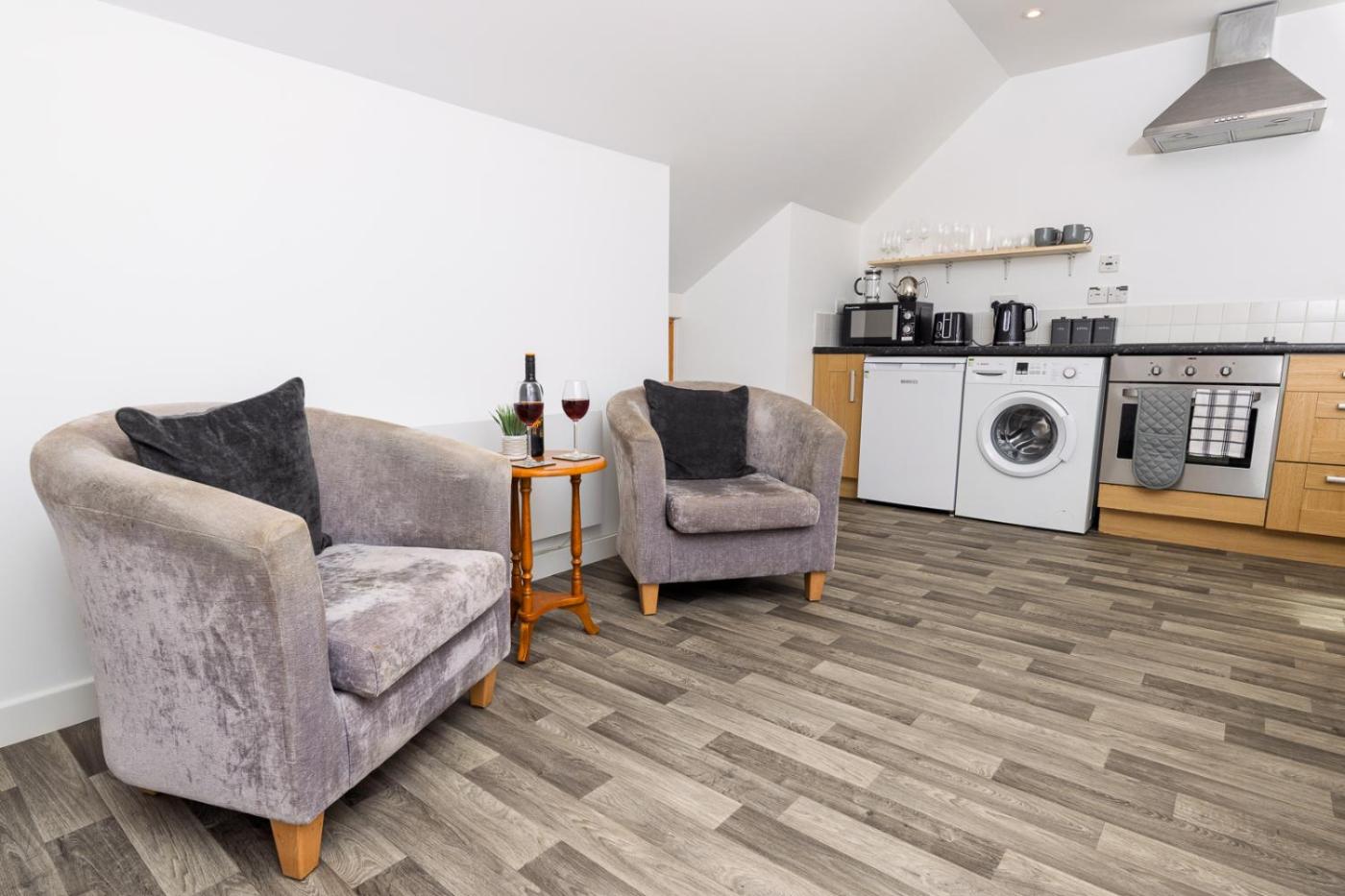 One-Bedroom Apartment. Featuring a private entrance, this apartment comprises 1 living room, 1 separate bedroom and 1 bathroom with a shower. Guests can make meals in the kitchen that comes with a stovetop, a refrigerator, an oven and a microwave. The apartment has a washing machine, a seating area, a dining area as well as an electric kettle. The unit offers 1 bed.