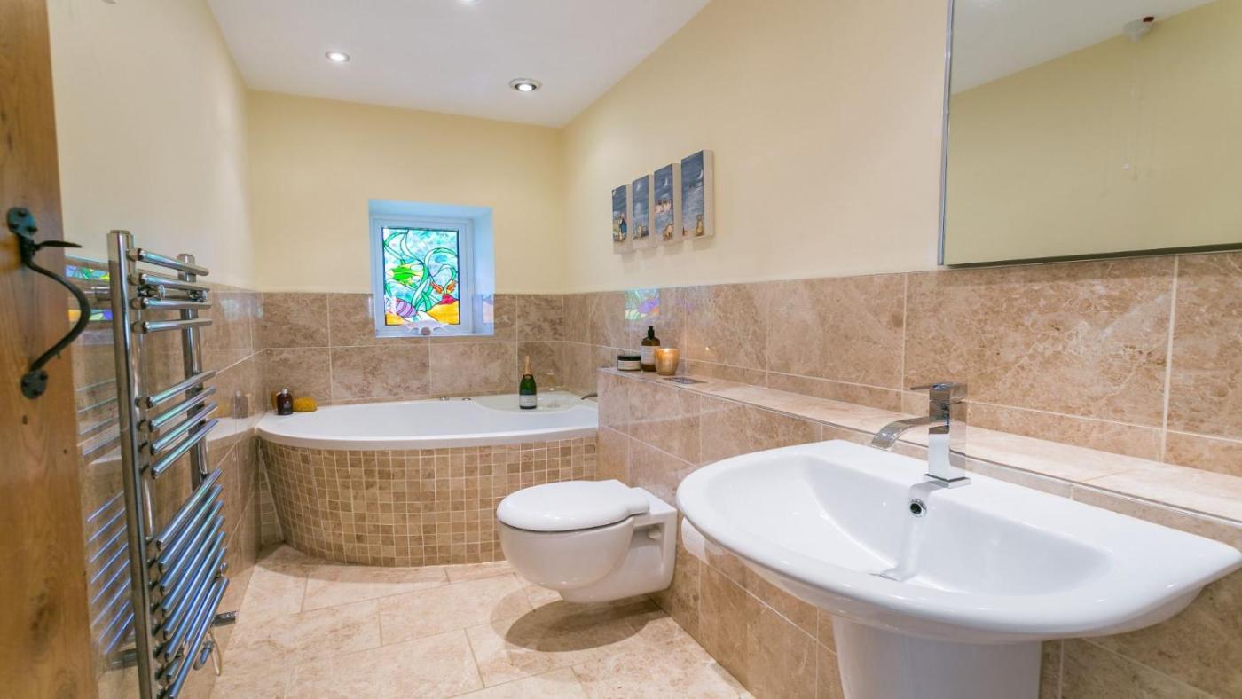 The 3-bedroom holiday home is equipped with a living room with a TV, a fully equipped kitchen with a dishwasher and oven, and 3 bathrooms with hot tub. The accommodation offers a fireplace.