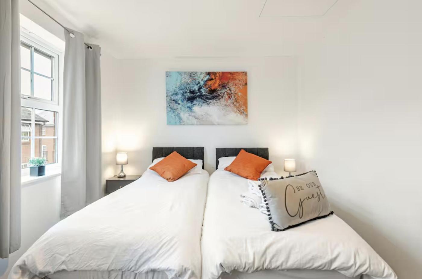 Three-Bedroom Townhouse. This holiday homes standout feature is the fireplace. This spacious holiday home includes 2 living rooms, 3 separate bedrooms and 2 bathrooms with a bath and free toiletries. In the well-fitted kitchen, guests will find a stovetop, a refrigerator, a dishwasher and kitchenware. The holiday home offers a flat-screen TV with streaming services, a washing machine, a private entrance, a tea and coffee maker as well as garden views. The unit has 5 beds.